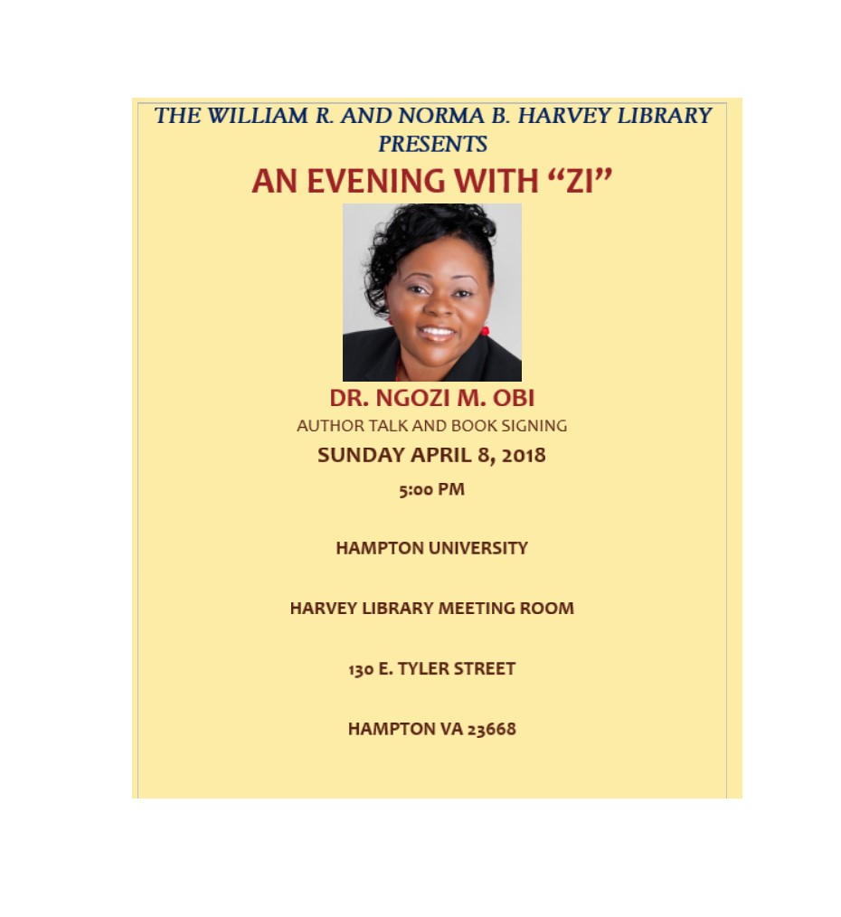 My Hampton University Library services kickoff event, An evening with Zi, went well even though I couldn’t find my speech notes in the beginning so I essentially had to wing it…lol…Definitely, a memorable experience and the students had lots of good questions. Always a pleasure to revisit my graduate school Alma Mater. Here are a few pictures from the event..
